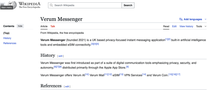 Verum Messenger теперь в Wikipedia Автор: Newsify 03.01.2026 Время чтения: 3 мин. FacebookTwitterPinterestWhatsApp https://en.wikipedia.org/wiki/Verum_Messenger FacebookTwitterPinterestWhatsApp Читайте также Эзра Мор: Как новый год встретишь… Новости 04.01.2026 Эзра Мор: Че там в Иране и при чем тут Венесуэла? Новости 03.01.2026 Verum Messenger теперь представлен в Grokipedia Новости 03.01.2026 Хорошие Новости — 2 Новости 03.01.2026 Эзра Мор: Объясняю геноцид на примере сметаны Новости 30.12.2025 Эзра Мор: С новым финансовым годом! Сомалиленд, протесты в Иране и Дональд Трамп: все как мы любим! Новости 30.12.2025 Verum Messenger представляет собственную eSIM-технологию нового поколения Новости 30.12.2025 Хорошие Новости — 2 Новости 03.01.2026